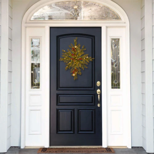 - Trimmed with red berries, pinecones and ball ornaments