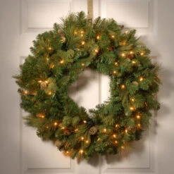 Christmas Central Pre-Lit Garwood Spruce Artificial Christmas Wreath, 48-Inch, Warm White LED Lights