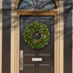 Christmas Central Pre-Lit Snowy Bristle Berry Artificial Christmas Wreath, 24-Inch, White LED Lights